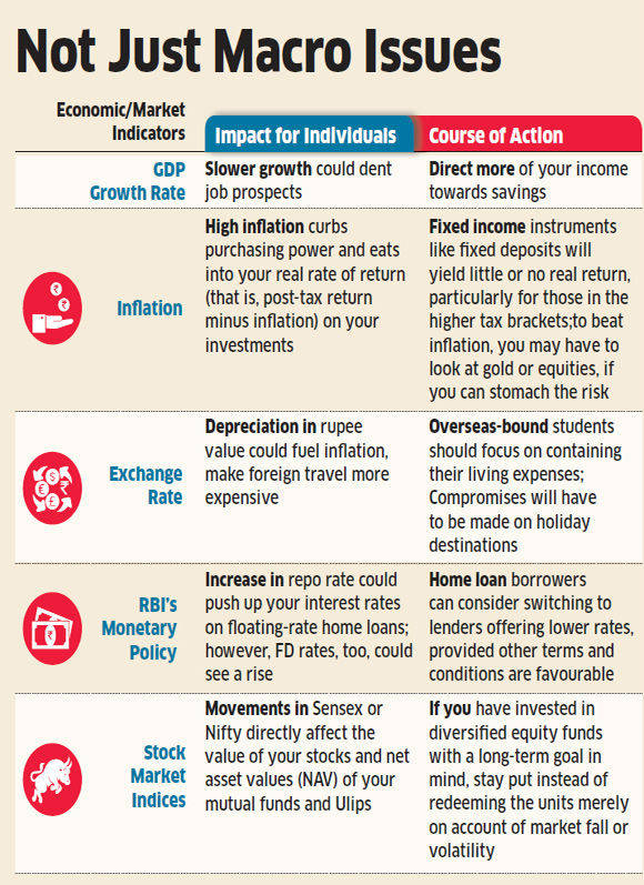 Here’s how economic indicators can affect your financial life This means that your capital has actually been eroded," says Aditya Apte, partner with investment advisory firm, The Tipping Point. The post-tax returns of traditional products like bank FDs and national savings certificates are not capable of beating inflation. "In inflationary times, one may look at stocks or gold as a hedge against inflation," advises Sabnavis.